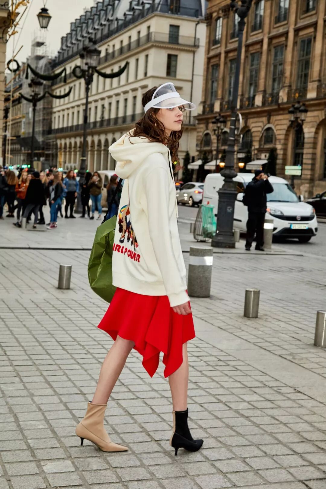 除了格子元素,本周上新的春装也同样很有看点!休闲帽T下搭配亮色不规则剪裁半裙,看着又仙又飘逸。