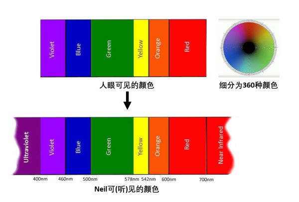 尼尔要记住360种颜色的震动频率和对应的颜色。