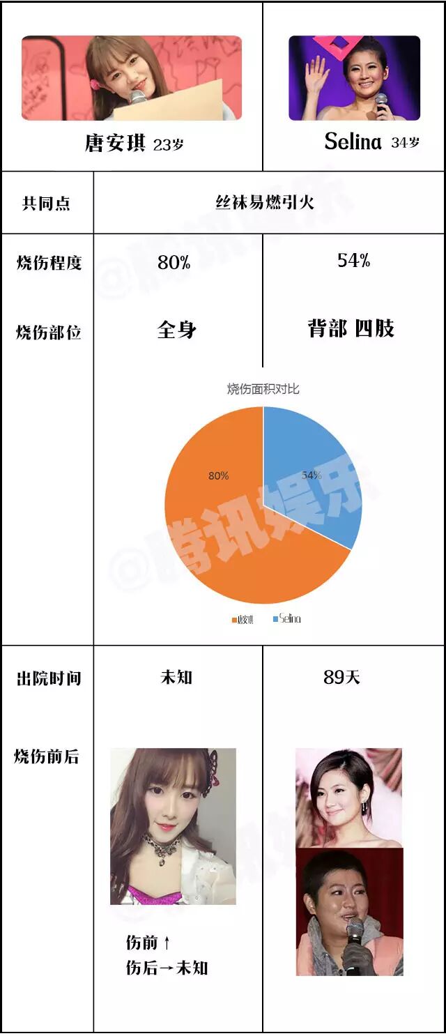▲唐安琪与Selina伤势对比图(腾讯娱乐微信公众账号独家制图)