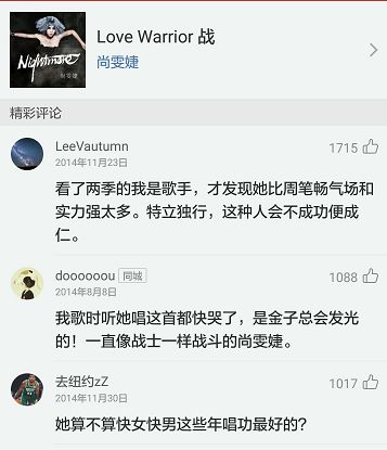 尚雯婕在《我是歌手》唱的《Love Warrior 战》