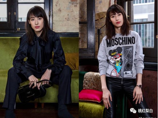 从深色系的套装到MOSCHINO的这个卡通卫衣,到了梁洛施身上居然都不违和。