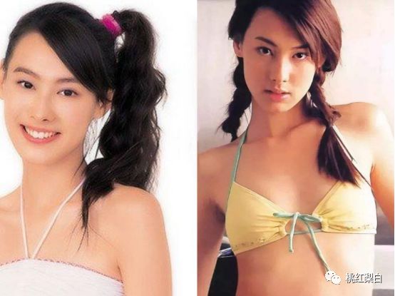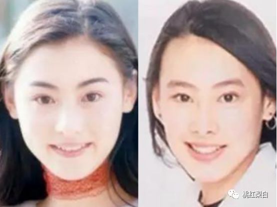 从脸型和下巴能明显看出,梁洛施是典型的长脸,而张柏芝早期则更偏向于圆脸。