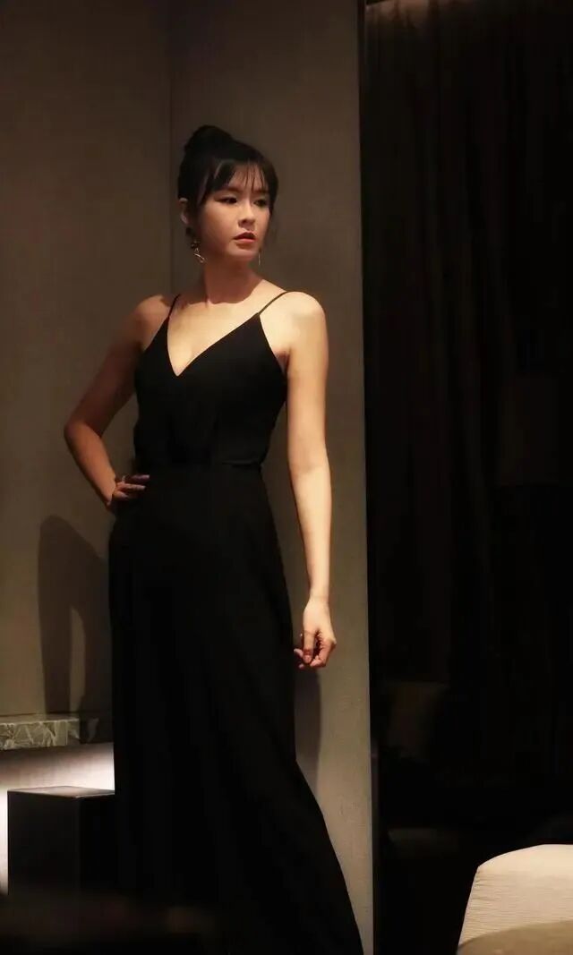 黑色的V领吊带裙完美的修饰了颈部的线条,使得颈部看起来更加的纤长优雅,从而使得整个人的气质更加贵气冷艳,完美塑造了天鹅颈的同时露出的一字肩更是成为了一道完美的风景线,配上收腰的设计凸显身材曲线,空气刘海与丸子头也为李艾带来了一丝灵动活泼的少女气息。