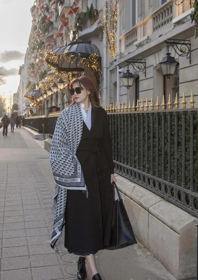 黑色呢子风衣又美又飒,搭配皮质尖头袜靴,拉长腿部线条的同时极具女性的知性妩媚的气质,皮质的袜靴也衬得整体look质感十足,配上一条灰色的披肩,御姐范儿十分的吸睛抢眼,整个人优雅知性的气质也是令人着迷,微微露出的百褶裙的裙摆也增添了一丝女性的温婉柔美,配上一头风情万种的棕色披肩发,时尚优雅,大气十足。