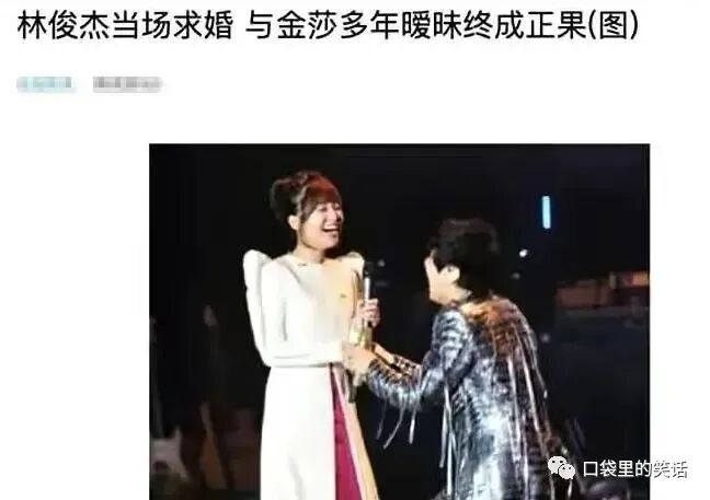 公司也有意让两人炒绯闻。林俊杰有一次举办演唱会,金莎作为特约嘉宾来到现场,在演唱时,林俊杰单膝下跪向金莎求婚。
