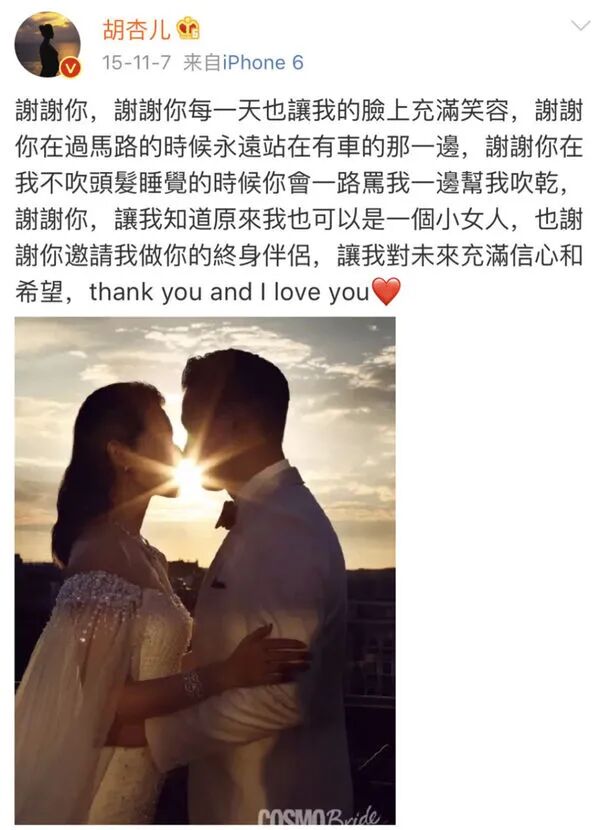 所以在别人攻击他的时候,胡杏儿毫不犹豫的站了出来,发文力挺老公。