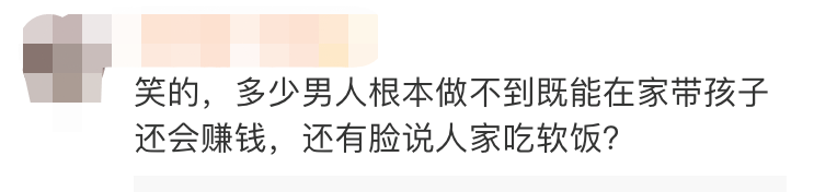 “有多少男人既能在家带孩子还会赚钱,还有脸说人家吃软饭?”
