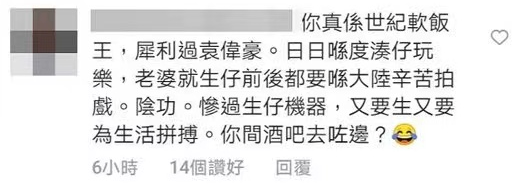 结果就有某些网友开始发表言论了,说李乘德是“世纪软饭王”,让老婆天天辛苦拍戏赚钱,他却整天带着孩子四处玩乐。