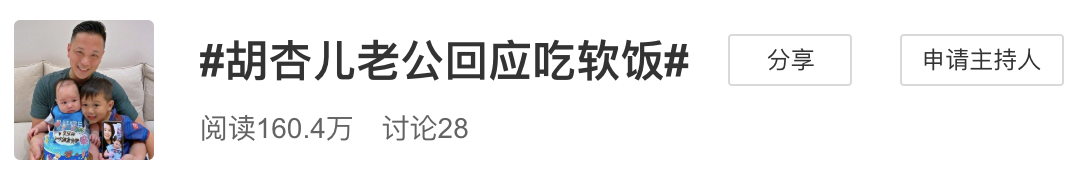 #胡杏儿老公回应吃软饭#