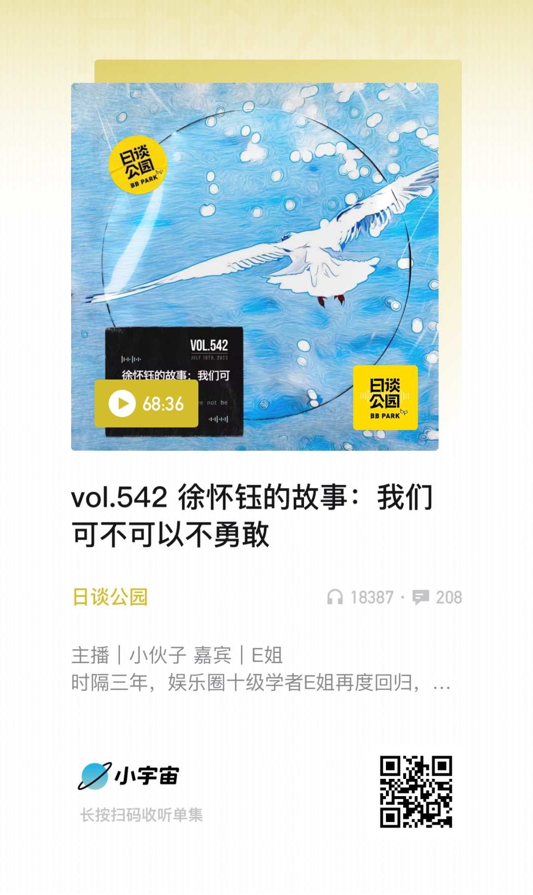 E姐最近在播客【日谈公园】作客,也和小伙子聊了徐怀钰的故事,感兴趣的朋友可以戳进去听听 ↓