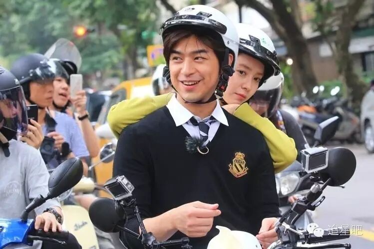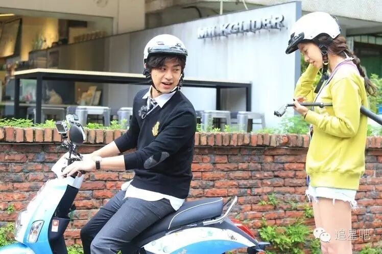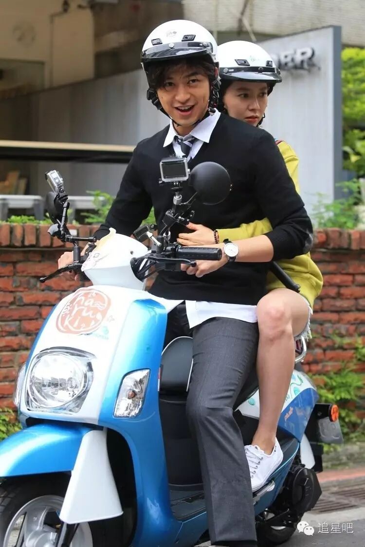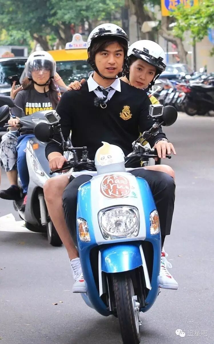 图/摘自微博《我们相爱吧》陈柏霖与宋智孝谈恋爱,在台北拍摄节目,陈柏霖骑机车载宋智孝,到陈柏霖的母校民生国中。记者林伯东/摄影