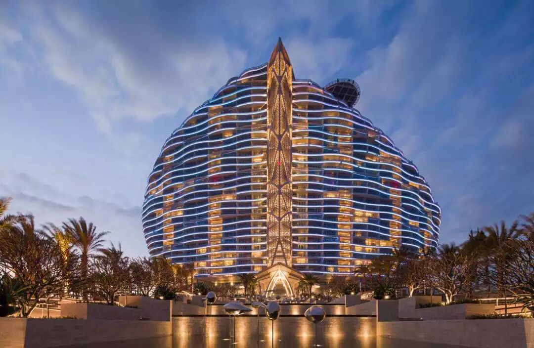 美丽、轻盈、华丽、自然是酒店的代名词,它的建筑轮廓就像一只展翅起舞的飞鸟,表面的起伏肌理与远处的海面相得益彰。因此有人把红树林酒店的姿态比做“在海风中翩翩起舞”。