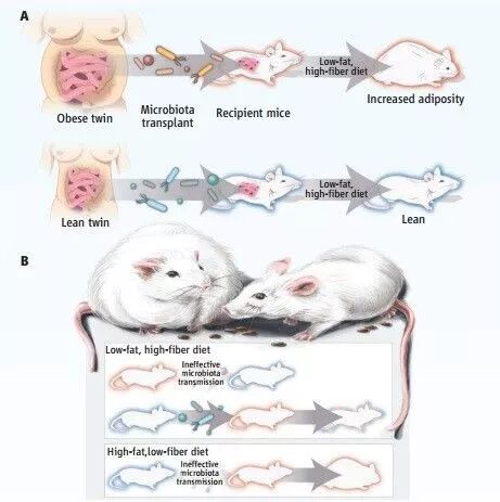 当他把A组小鼠的肠道菌群移植给B组小鼠后