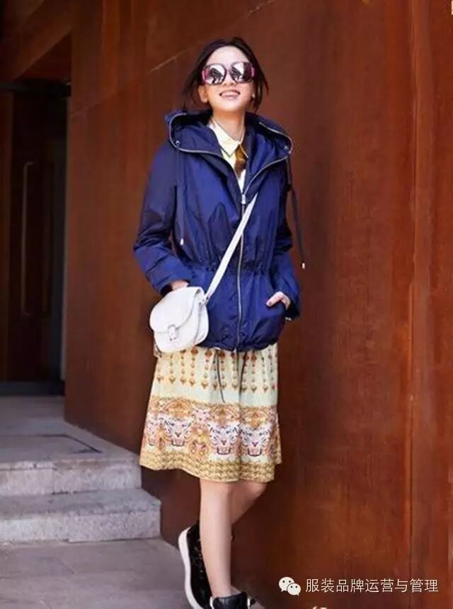宝蓝色休闲外套搭配印花单裙十分休闲,这样搭配看起来也相当别致,展现出陈乔恩活泼俏皮的一面。