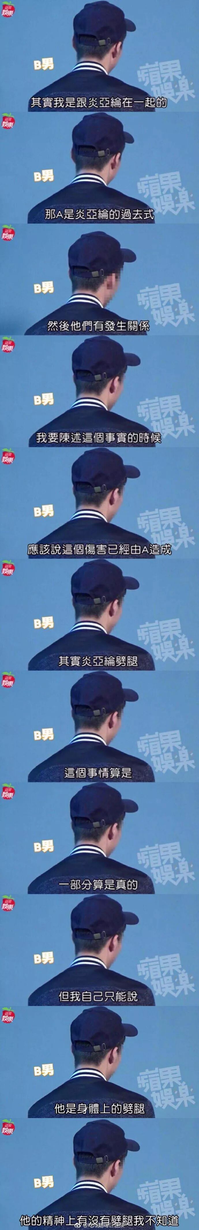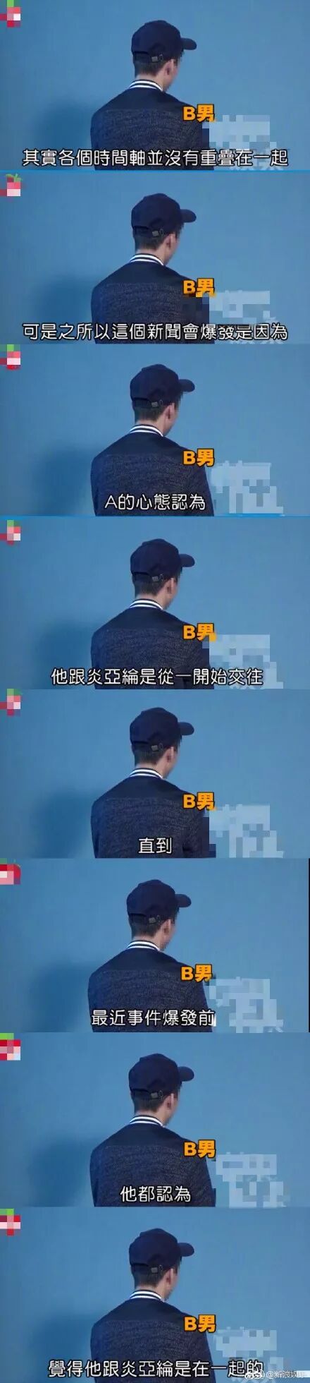 一个号称是炎亚纶交往过的B男,跑出来说,自己替炎亚纶澄清,他没有劈腿,
