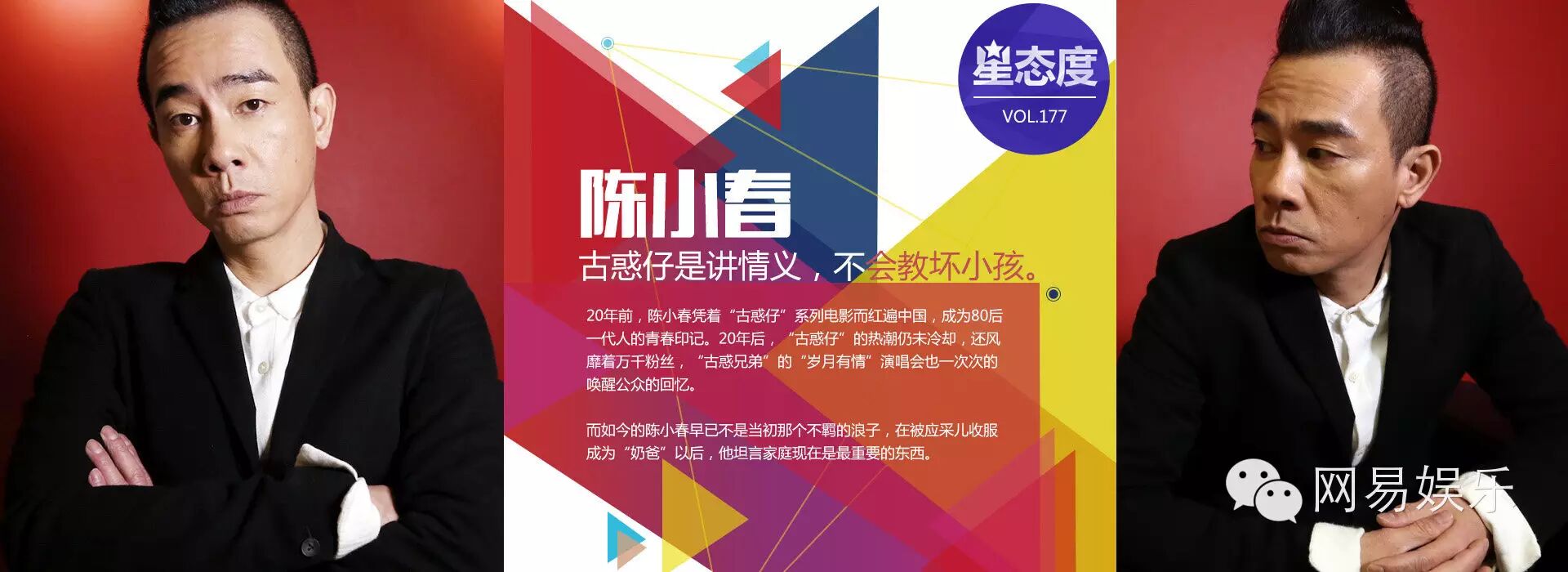 陈小春:这个就真的是大家万万没想到,2016年刚好是20年,还有那么多朋友支持我们,这个是非常谢谢你们,也真的,其他几个兄弟都没想过会有这么多的朋友还那么念旧,还记得我们,真的是非常谢谢你们。也许我觉得应该是,那个时候没试过,因为我们那部电影是没有在电影院上过,那个时候他们都是看DVD,不是DVD是VCD,录像带这种东西,也许也是刚好碰上国内那些交接猛飞的时候,大家一番感情一些投射吧。有很多人想要说“你们以前拍的那些电影,教坏很多人,教坏一代人。”对不起对不起,我们只是一个演员,没有想过要会,因为香港以前拍一些电影,有些题材是完全没有限制在里面。但是我们那几部电影都是,里面是,不只是讲那些所谓打打杀杀的东西,我们里面讲的都是男生的一些情谊上的关系,所谓的兄弟关系吧,对于情义的事情。真没想过大家,到今天20年以后,还那么记得我们,还那么支持我们,这个是非常感恩的。