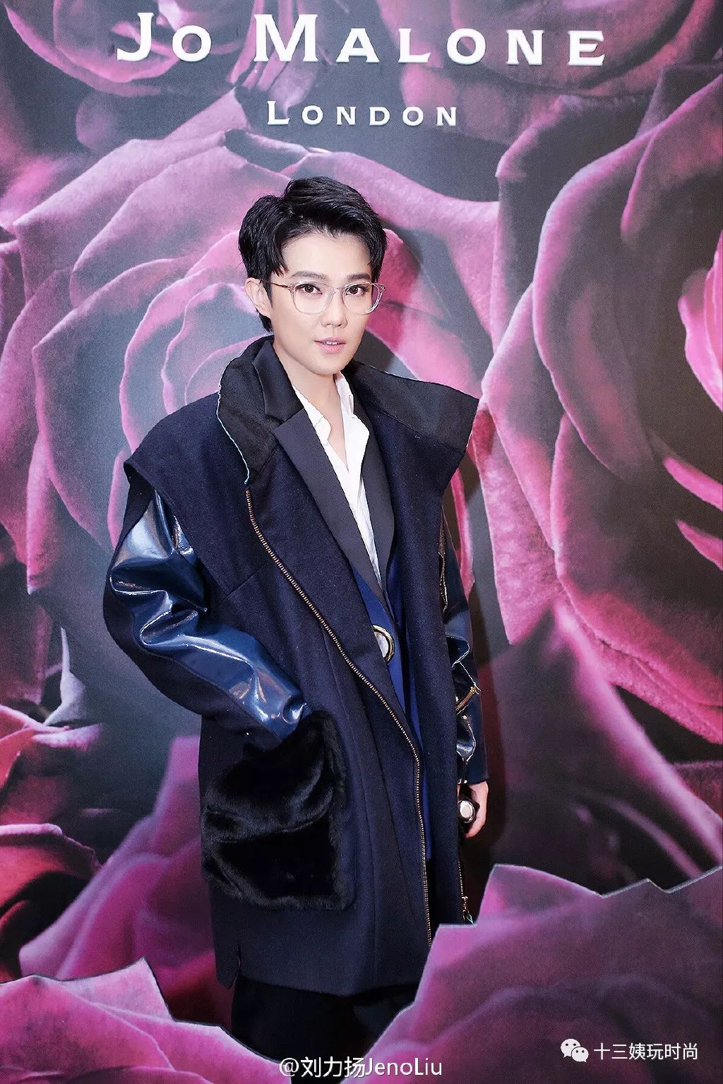 搭配见解:oversize这一个类型得外套,最大得优点就是让女生更加的绅士,刘力扬在这件大大的深蓝色外套之下,显得更加娇小,内搭黑色西装,将刘力扬不一样得时尚气质完美的展现了出来,随性而又洒脱。