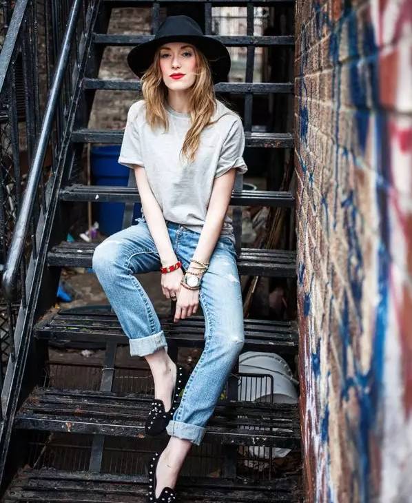 裤子的设计是比较流行臀部比较宽大,然后慢慢修窄,形成“倒三角”的剪裁。不过也可以是宽松的长裤或者破洞牛仔裤,同样能穿出中性风。