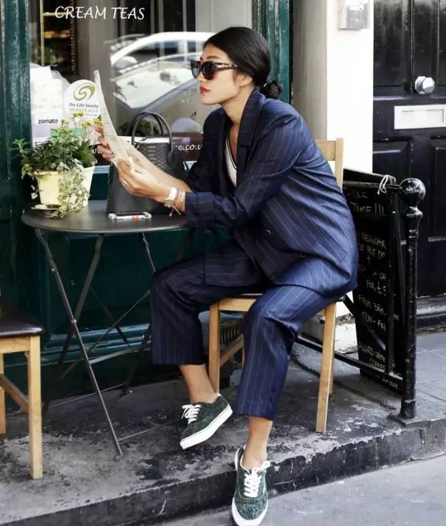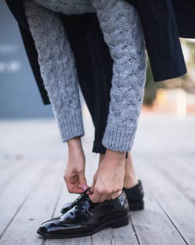 搭一双带有点男性风格的皮鞋很有必要,配上宽松的破洞牛仔裤,或者有硬朗线条的裤子,hold住中性风就这么容易。