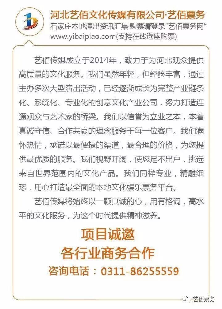 票房地址:1.石家庄市长安区中山路与建设大街交口北行100米路东富邦大厦833室(支持扫一扫,轻松支付购票)