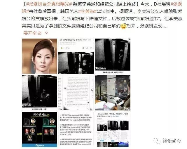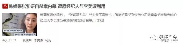 3月18日,据韩国媒体报道,在张紫妍的事件中艺人李美淑也扮演着一个非常重要且有心计的角色,媒体们爆料原来李美淑曾联手张紫妍生前的经纪人李长浩怂恿张紫妍撰写“张紫妍名单”,之后又将一切责任推给张紫妍,让张紫妍在巨大压力下自杀身亡。
