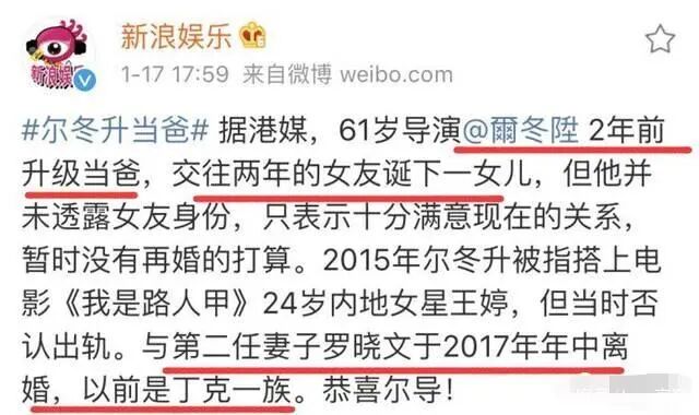 张大大在坊间的风评确实不佳,这些年不知道有多少网友想要众筹打他,所以他招人烦而不自知是事实,没有啥实力还四处瞎蹦跶辣观众眼球也是真的,但是瓜众萌因此就去粉尔冬升就真的是爬错墙头了,因为论起恶心,尔冬升可不比张大大逊色,他长年在港圈搞山头主义这些落后文化,弄阴阳人那一套叔就不提了,就私德来说,他也是令人不齿的。要知道,尔冬升也不是一路都顺风顺水,中年困顿时也是全靠原配妻子任他吸血,结果他自己事业上再度逢春后,就马上甩了原配,找了比他小十多岁的罗晓文做红颜知己,罗晓文被他从少女耽误成大妈之后,他终于松口娶了罗,但却搞了一场裸婚加隐婚,连他亲兄弟都不知道他再婚了。而这个时候,他又说自己是丁克一族,坚持不要小孩,结果等把第二任太太拖老了之后,他又出轨了被自己潜规则的电影女主,并且还在婚内跟小三正大光明生了一个女儿,就这种人渣,真的是没什么可值得被网友追捧的。