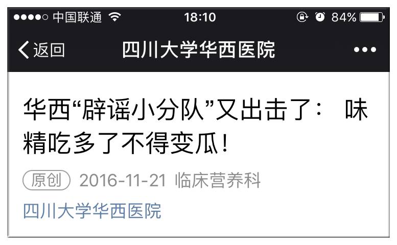 华西的官号有一个神秘的组织,长期致力于与各种朋友圈养生文作斗争。