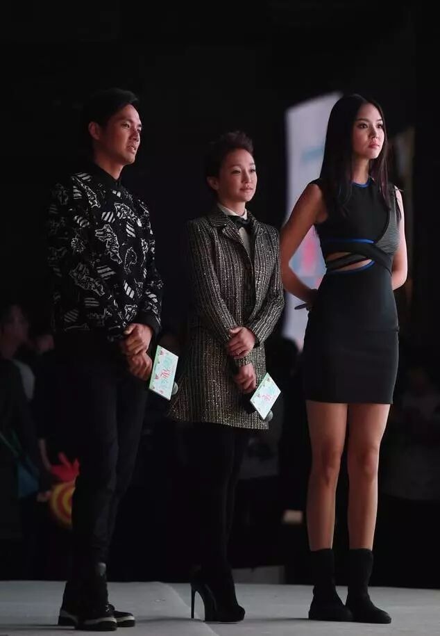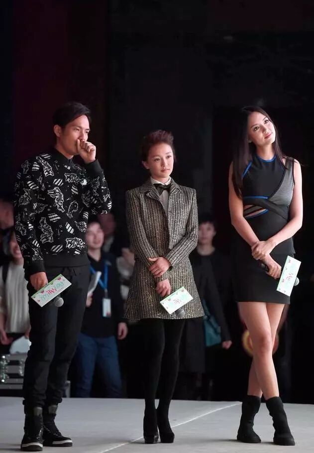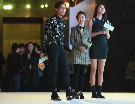 钟汉良周迅张梓琳三人同框,钟汉良和张梓琳都穿平底鞋,周迅穿恨天高,高矮立马一目了然了。