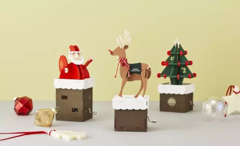 三款不同的八音盒,圣诞老人、圣诞树、麋鹿三款造型,颜色可以根据自己的创意来搭配哦~~~轻轻转动八音盒的手柄,悠扬的乐曲响起,在动听的旋律中,和朋友们一起分享充满幸福感的圣诞祝福!