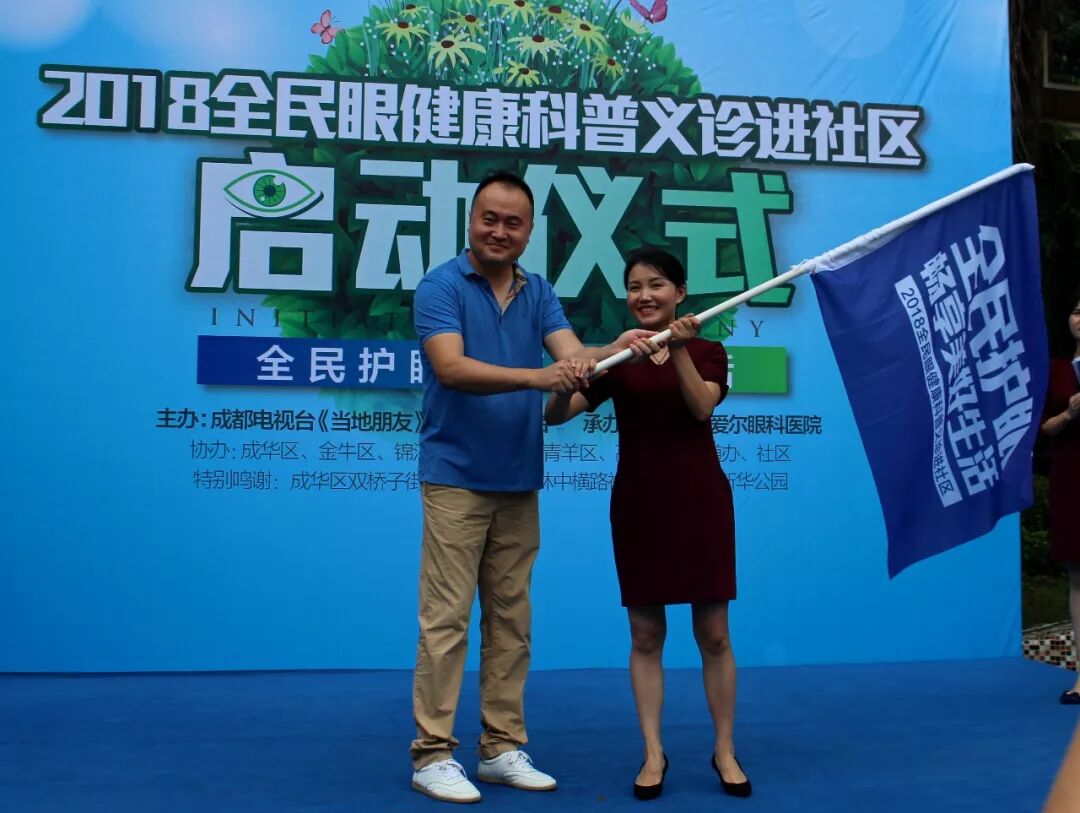 随后,《当地朋友》社区门户平台负责人刘科将象征着专业、爱心、服务的旗帜授予成都东区爱尔眼科医院。