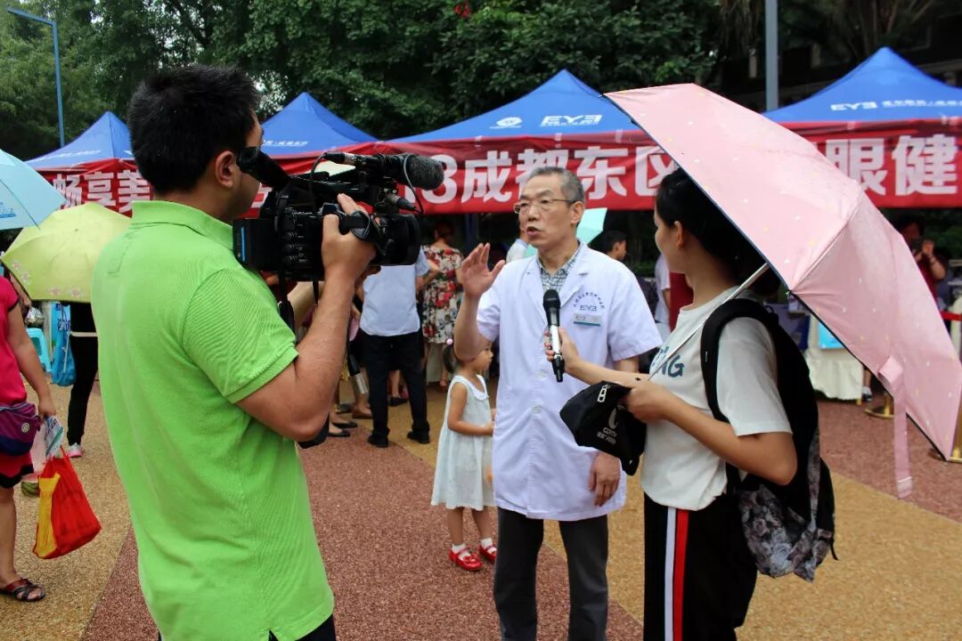 ▲成都电视台记者就白内障及青光眼相关问题采访肖志全主任