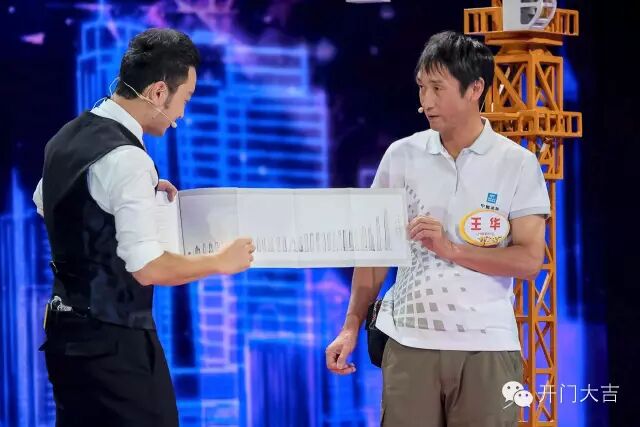 说他是从顶峰走下来,毫不为过。王华是新中国第一代超高层建筑塔吊司机,也是中国目前在建最高建筑深圳平安大厦的塔吊司机,每天在660米的高空作业,不足一平米的操作室,时不时还得走过整个大臂,在六百多米的高空走过狭窄的通路,到吊臂顶端维修养护。 二十七年来,国贸一二三期,天津塔……而今天来到演播室,王华拍着胸脯笑着说“我就该来这个舞台”!原来央视新址也出于他之手,来到这个熟悉的地方,”开门“成绩如何呢?期待他今晚的表现吧!