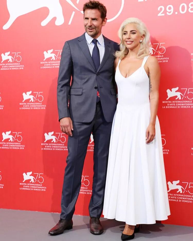 Lady Gaga和布莱德利·库珀同时亮相发布会现场,俩人在片中饰演一对情侣。