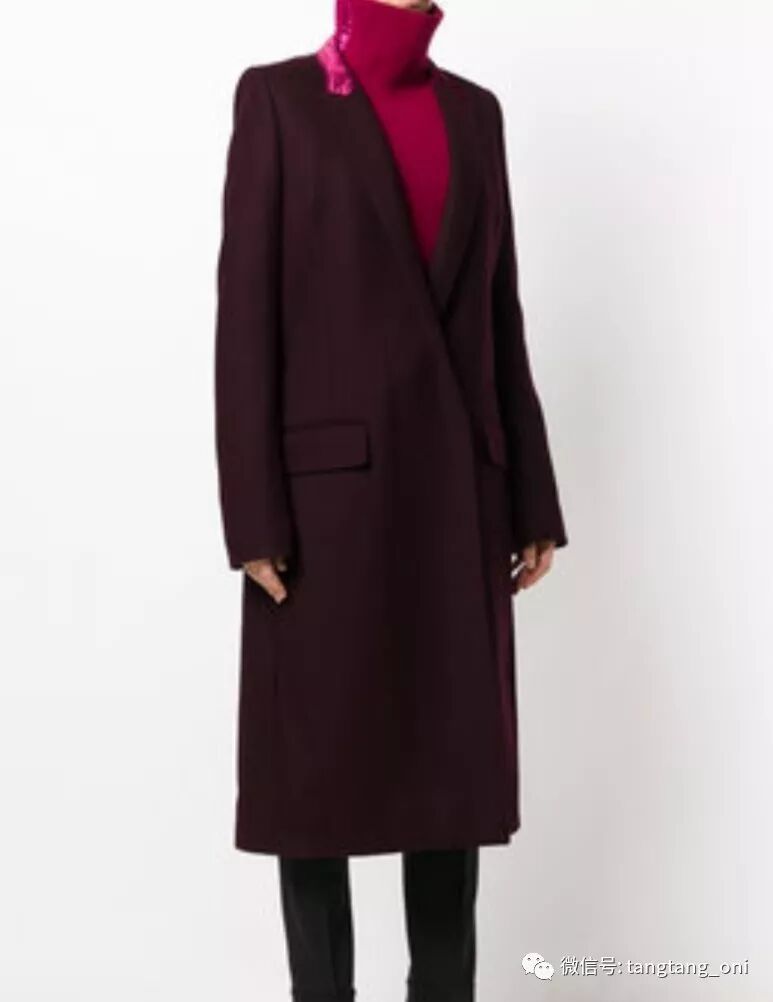 领口红色边增加了这件大衣的独特性。