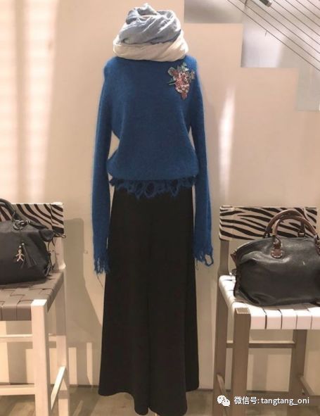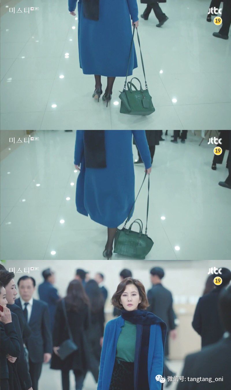 金南珠在剧中用的是藏青色,搭配蓝色长开衫,