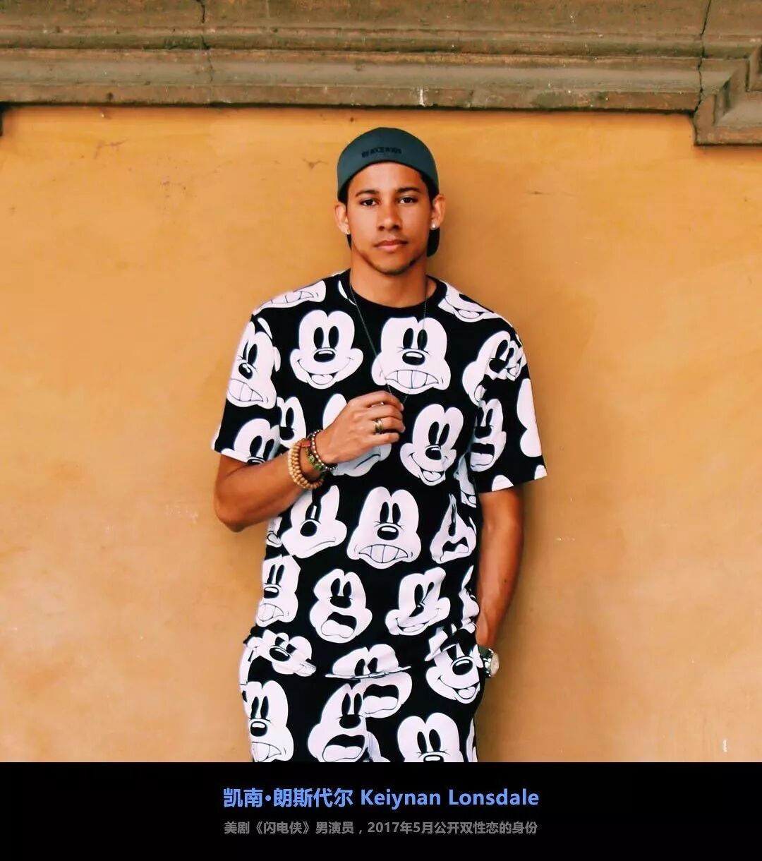 在美剧《闪电侠》第三季中扮演第三代闪电侠沃利-韦斯特的男星凯南-朗斯代尔(Keiynan Lonsdale),5月份在推特和Instagram上发文出柜。他说:“我喜欢改变发型,我喜欢在造型上冒险,我喜欢女孩子,也喜欢男人(是这样的),我喜欢成长,喜欢学习,我喜欢那些我想要成为的人。”最后他这样总结道: “每个人都有每个人的活法。我希望我们可以学会接受我们自己,也不要批判那些和我们不一样的人。事实上,我们都是一家人,我们是一体的。”他鼓励所有人拥抱自己的真实身份,展现出最棒、最真实的自我。