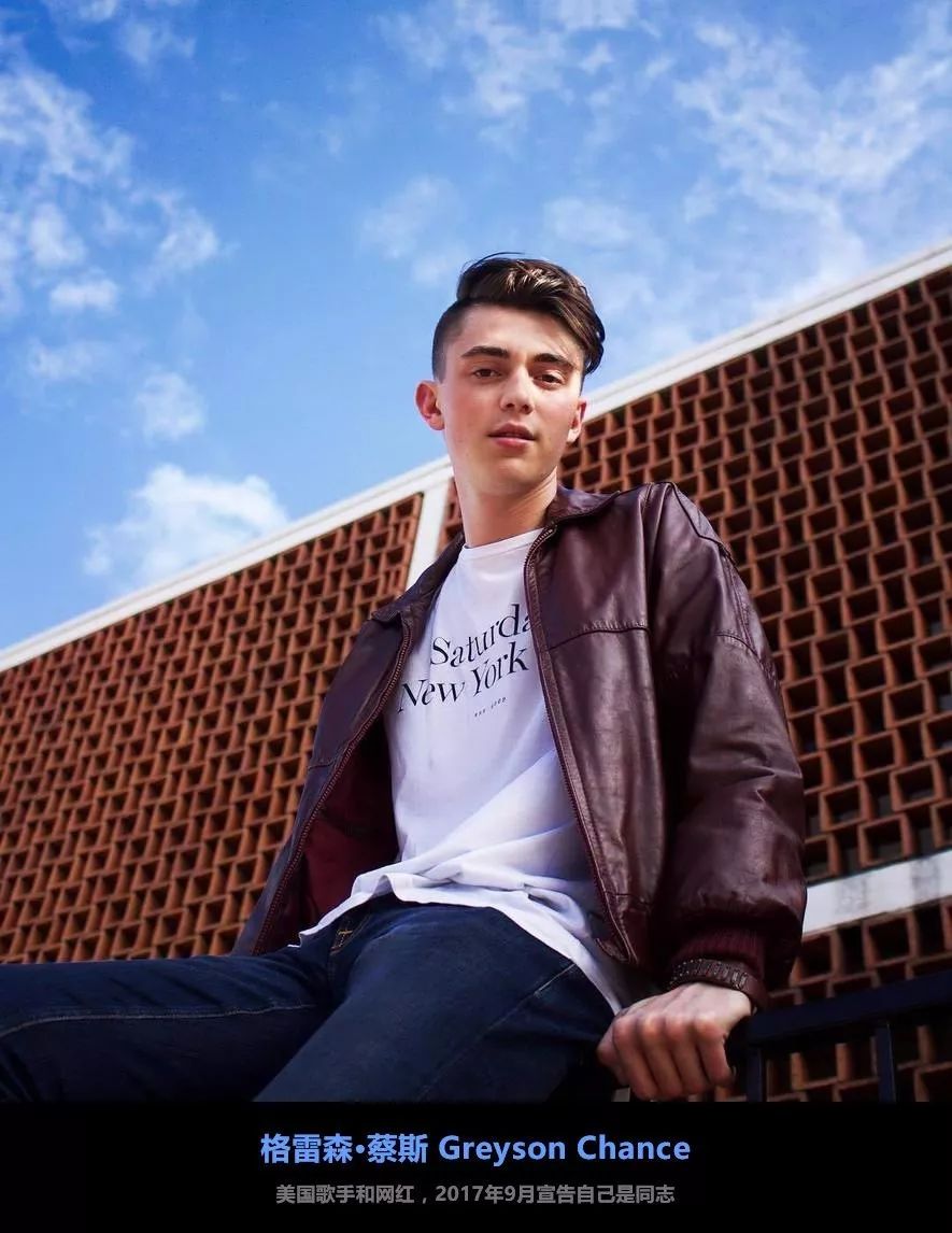 被中国歌迷称作“灰森”的美国19岁歌手和网红格雷森-蔡斯(Greyson Chance)今年9月在社交媒体上宣告自己是同志,获得数万人点赞支持。格雷森在Instagram上表示,他收到的充满勇气的信息激发他决定公开谈论音乐事业之外的话题,比如私人生活。“我在16岁的时候完全意识到我是Gay,当时我没有公开性倾向,主要是出于隐私考虑,毕竟我仍在凭借自己的努力,寻找自在和自信的感觉。”他坦言这个帖子早就应该发布了,不过对他来说,做好准备需要花上好几年的时间。他发现许多人跟他当年一样,正处于探索性向、寻求自信和自我接受的过程中,所以他希望自己出柜能鼓励这些朋友。他写道:“我现在很快乐,我会支持你们,我为自己感到自豪。”