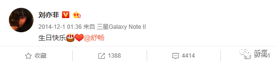 2014年,刘亦菲就发了单条微博给舒畅庆生。