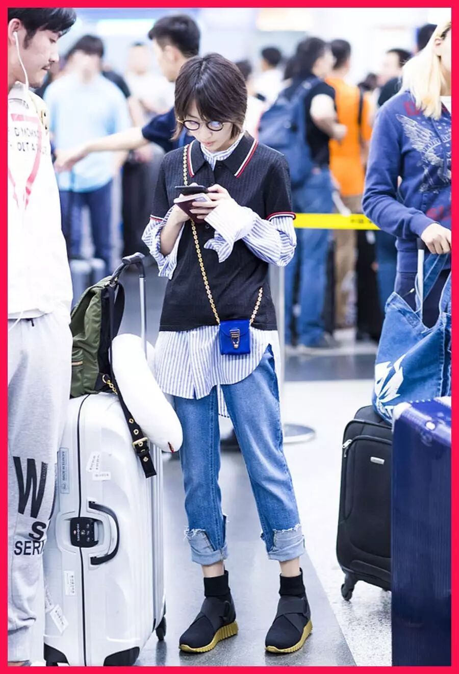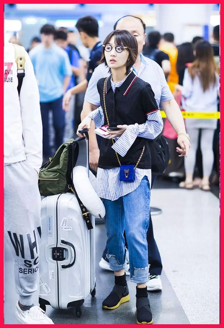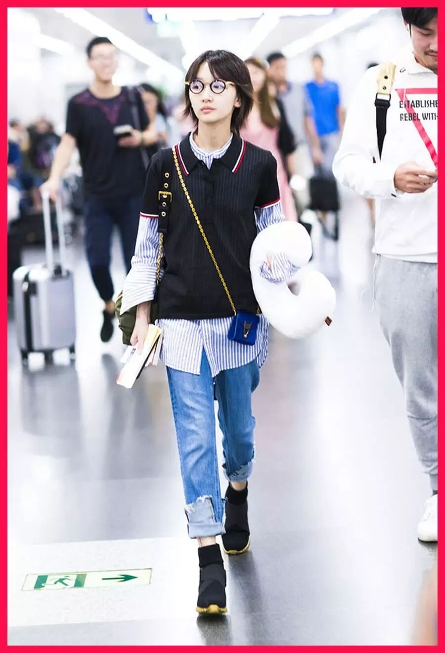 周冬雨都这么素颜皮肤白皙嫩滑,两件衣服叠穿配牛仔裤看起来中性清爽,率性十足~