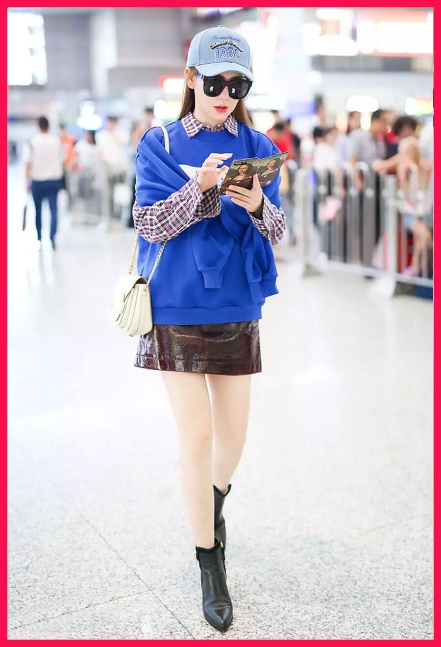 戚薇当天黑超遮面,卫衣潮穿,低头手机玩不停似网瘾少女,大秀细长直白腿美炸天!