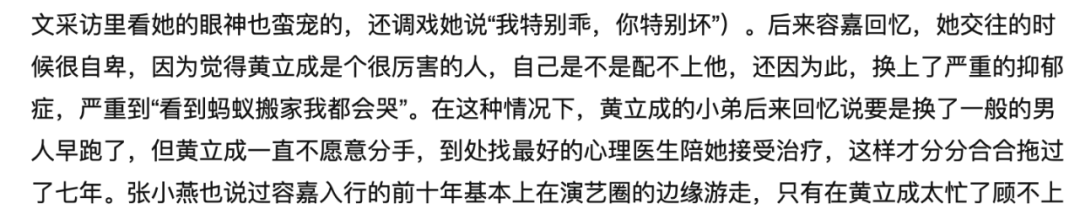 而刘容嘉在恋爱期间一直处于“极度自卑”的状态,常常因为觉得男友太过优秀而提出分手。