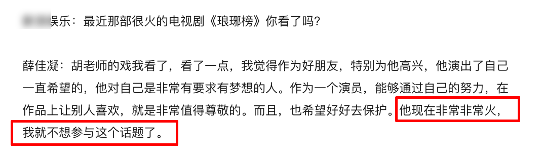 而薛佳凝在胡歌翻红后,则是不诋毁不蹭热度不炒作,曾有记者采访她,她笑着拒聊胡歌:“他现在太火我就不参与了!”
