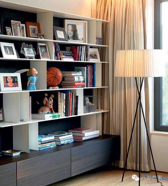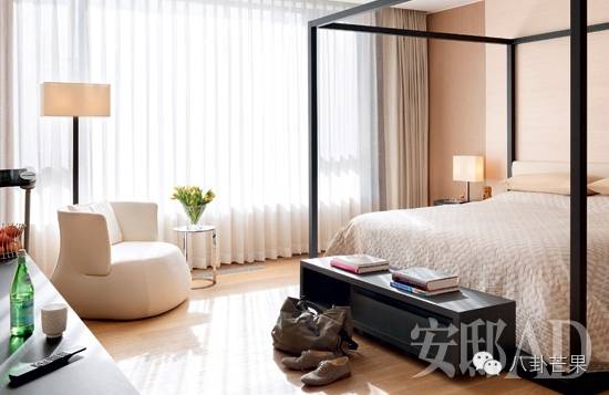 单单看卧室,也低调奢华,床来自Maxalto,角落里的白色沙发来自B&B,旁边还摆着B&O的落地音响。