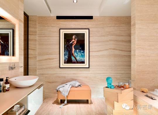 浴室里,有玛丽莲·梦露的摄影师劳伦斯·席勒(Lawrence Schiller)为她拍摄的一张照片挂在主墙面正中,这是好朋友曾梵志送给林依轮的限量版礼物。