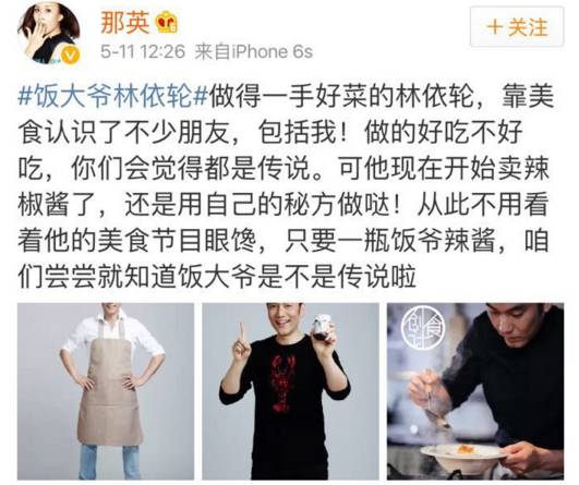 纵横美食界数十年,林依轮靠“吃”积累起来的好人缘真不是盖的,他开创美食品牌,歌唱界演艺界投资界都为他卖力吆喝: