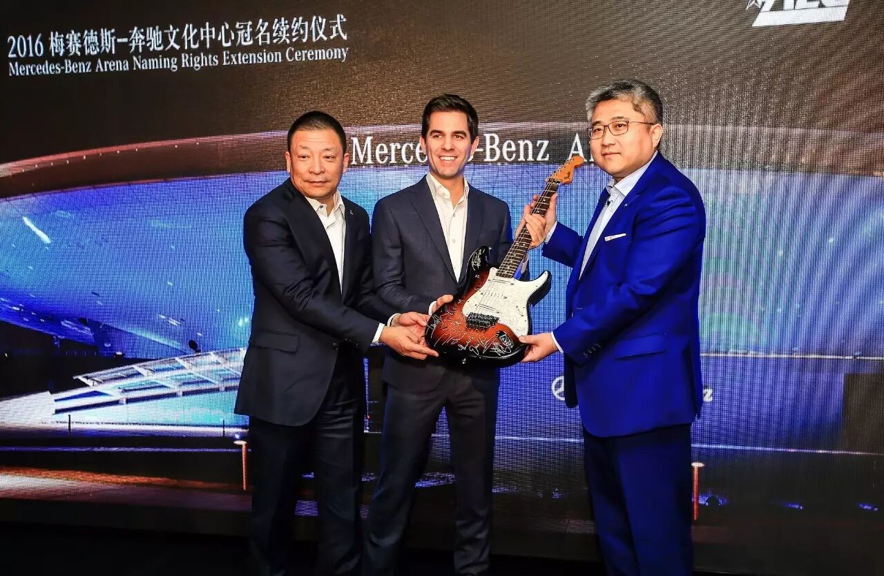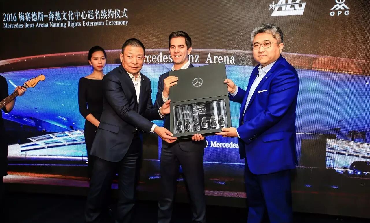 上图三位嘉宾从左到右分别为:上海东方明珠新媒体股份有限公司文化娱乐旅游事业群副总裁黄晋先生、北京梅赛德斯-奔驰销售服务有限公司执行副总裁段建军先生和AEG亚太区总裁兼首席执行官Adam Wilkes先生。