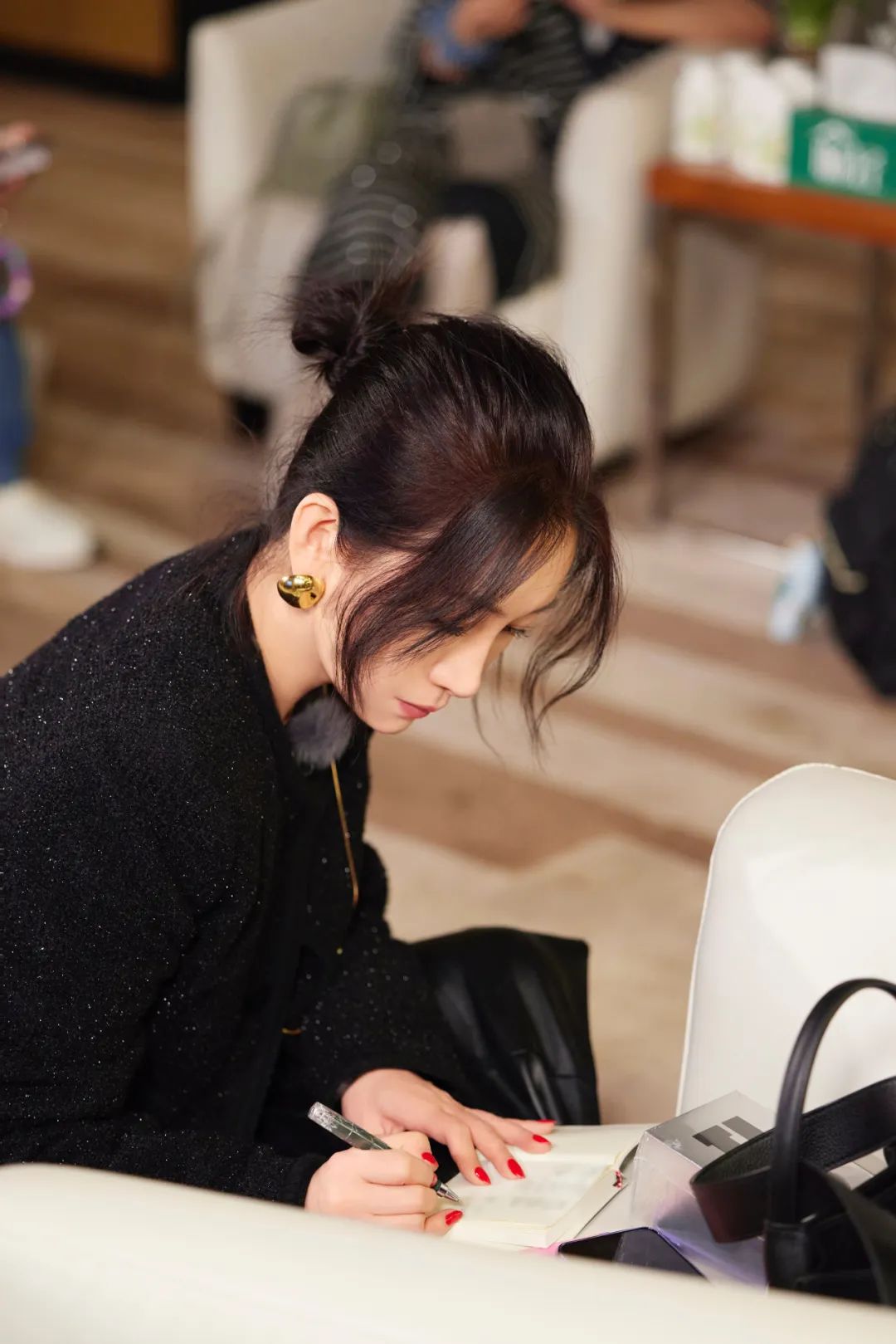 比普通盘发造型更加彰显气质的鸡毛毽子头,与各种妆容适配度都很高。以一袭粉色西装搭配低扎鸡毛毽子头的杨幂,发尾挑出的发丝凌乱又不失美感。