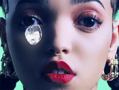在《Water Me》 MV 中,FKA Twigs 的整个面部充斥了屏幕,配合妆容和嗓音让你怀疑这到底是真人还是恐怖娃娃。