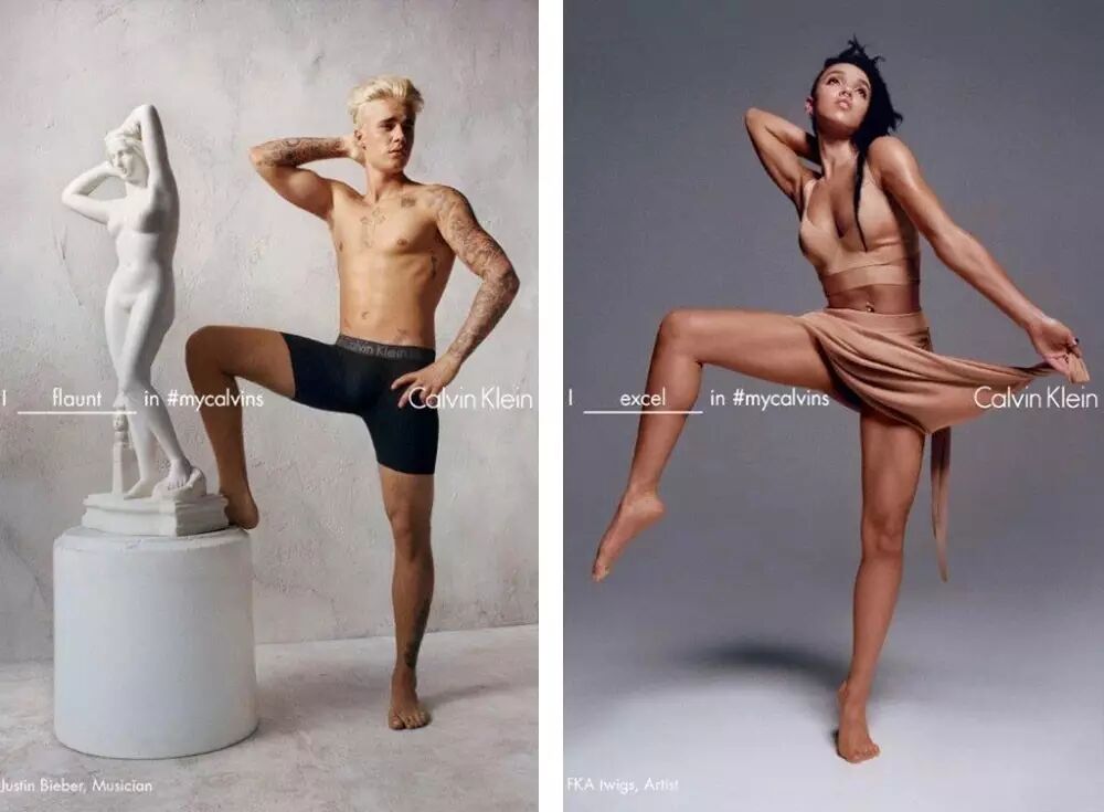 还有 Calvin Klein 2016 年声势浩大的 “I _____ in #mycalvins” 企划,同样也请到 FKA Twigs 与 Justin Bieber、Kendall Jenner 等人一起展现品牌的年轻文化。