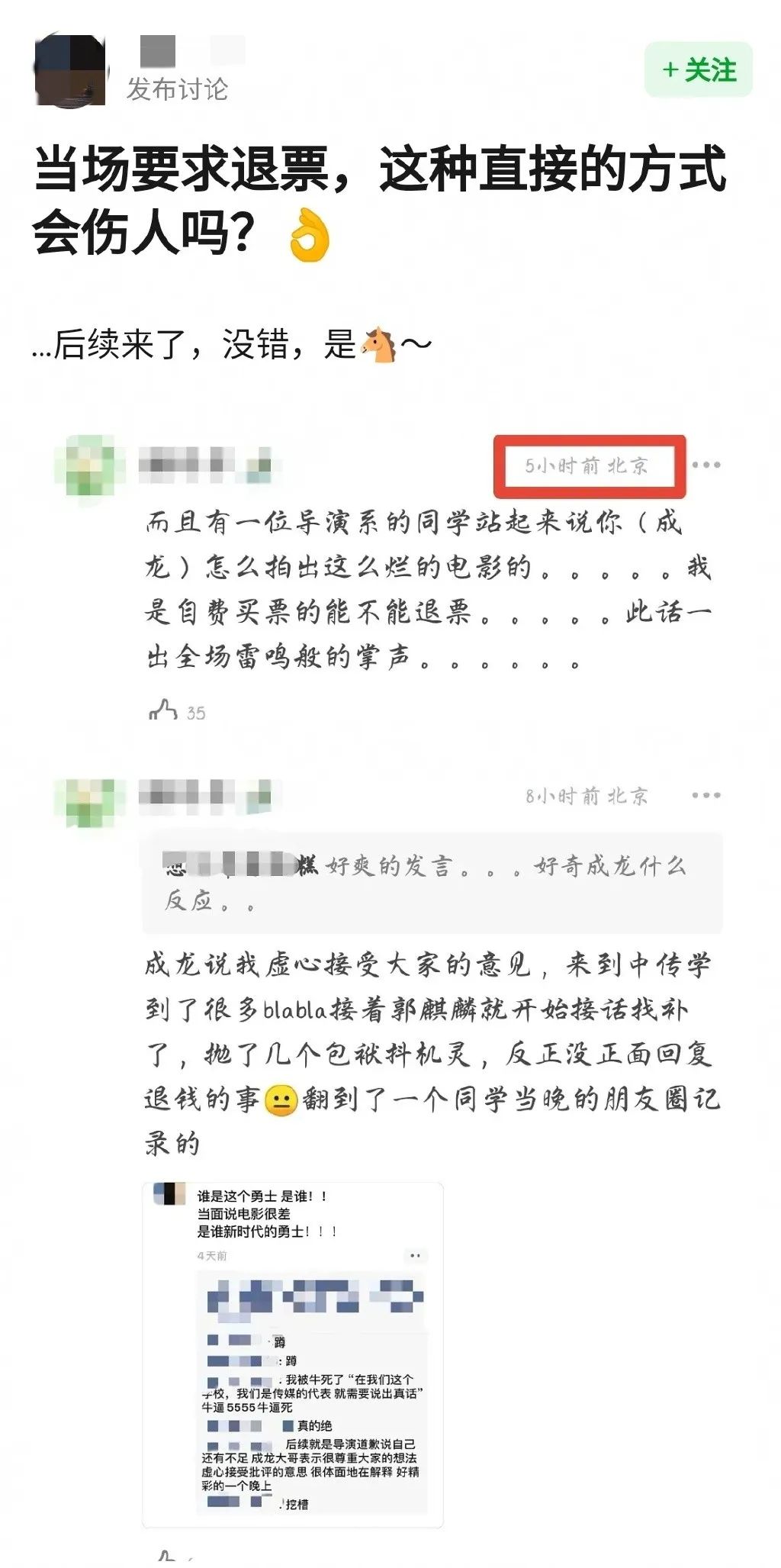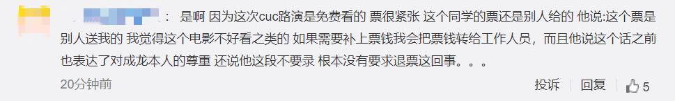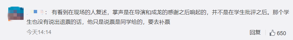对此,网友评论说:“市场还是需要这样的观众的,虽然尴尬但是没人说的话,片子只会越来越尴尬。”“成龙回答有涵养,他希望观众指出具体是哪些镜头,哪些剧情没拍好,这样能使他进步。单纯指责不使人进步,只会打击人的自尊。”